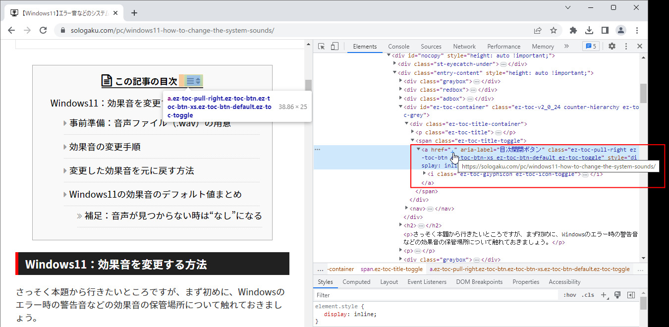当サイトでは目次の「閉じる」ボタンと、Twitterのシェアボタンにこの改善案が出ていたので対処しました。