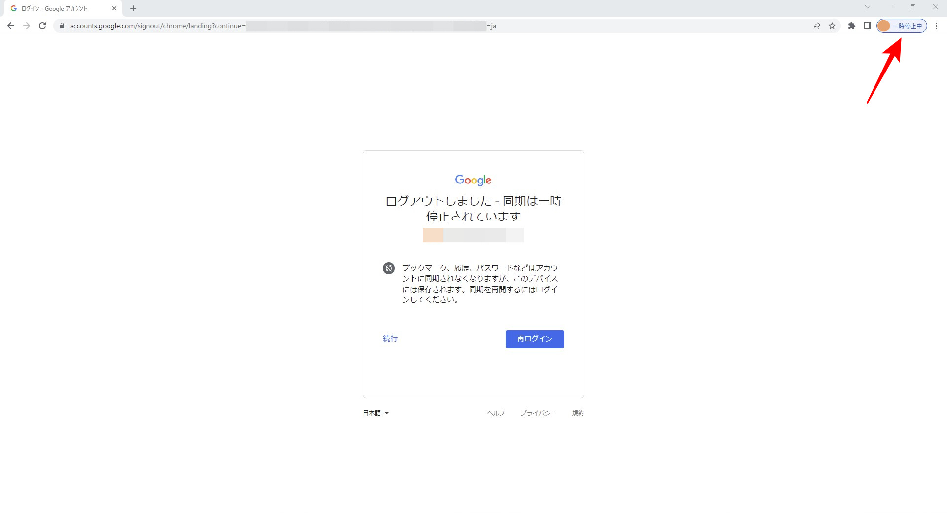 今のChromeは単にログアウトしただけでは「一時停止中」の状態になるようです。