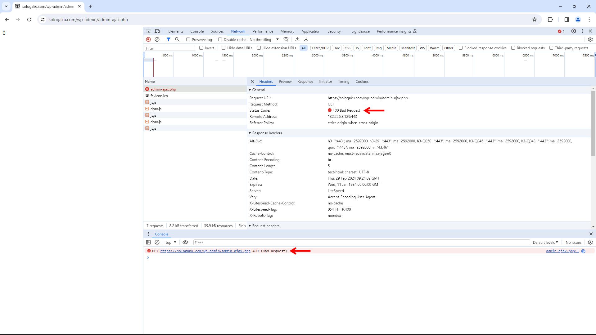 「/wp-admin/admin-ajax.php」ファイルは、ブラウザで開くというよりプログラム内で使うファイルです。なので、普通に開けば400エラーが返されます。