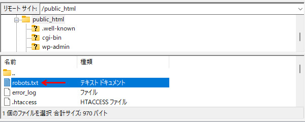 既に書きましたがrobots.txtの設置場所は決まっており、サーバーの公開ディレクトリ(public_htmlなど)の中にあるはずなので、これを編集しましょう。